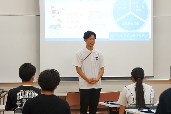 所属する臼井達矢准教授のゼミでは、子どもと関わる活動も多いという。「小学生を対象にしたスポーツ教室や高校を訪れてのリズムトレーニング、ストレッチ?テーピングの指導など、生徒たちとたくさんの交流がありました」。