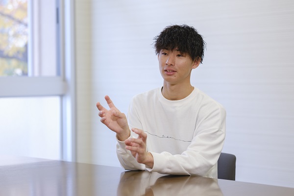 大阪府の教員採用試験「小中いきいき連携」に合格した、教育学部中等教育専攻保健体育教育コースの平木颯さん。合格発表を確認するときは、スマホを持つ手が震えていたという。「合格したと分かったときは、両手を上げて喜ぶほどうれしかったですね」。これから教員としてスタートを切る平木さんに、教員を志した理由や大学で学んだこと、理想の教員像についてお話をお聞きした。