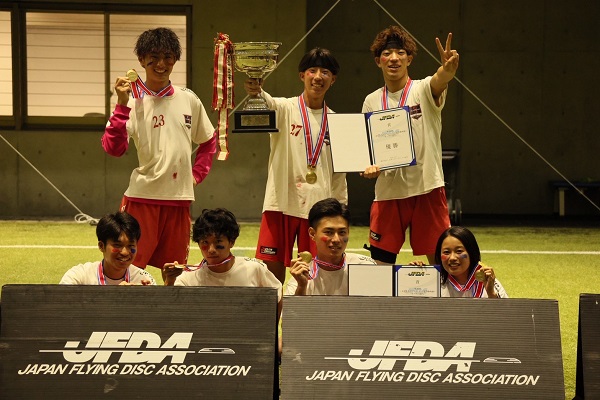 4年生最後の第36回全日本大学アルティメット選手権大会で優勝、大学日本一に(平木さんは番号23)